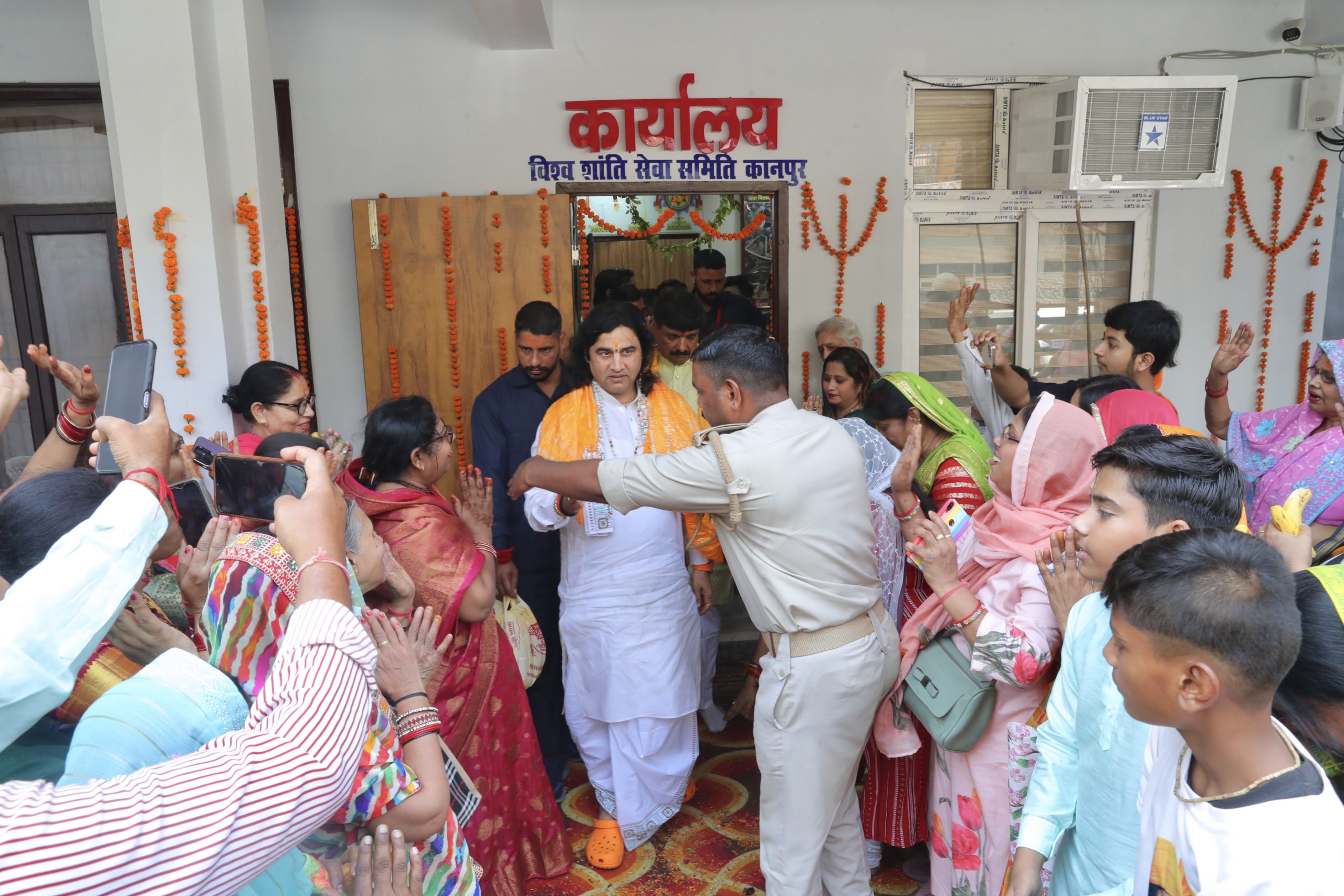 पूज्य श्री देवकीनंदन ठाकुर जी महाराज का कानपुर में आगमन हुआ, जहाँ भक्तों ने प्रेम और भक्ति भाव से उनका भव्य स्वागत किया। इस पावन अवसर पर महाराज श्री ने विश्व शांति सेवा चैरिटेबल ट्रस्ट के नवनिर्मित कार्यालय का उद्घाटन किया तथा विधिपूर्वक पूजा-अर्चना संपन्न की।