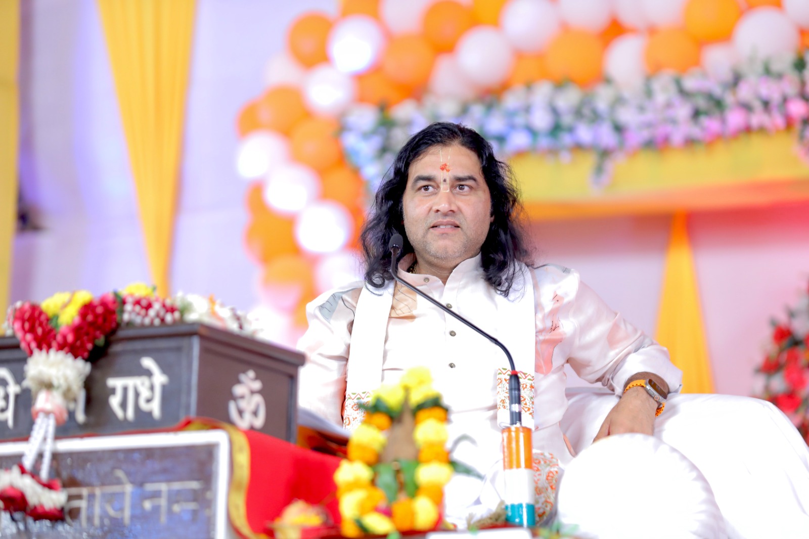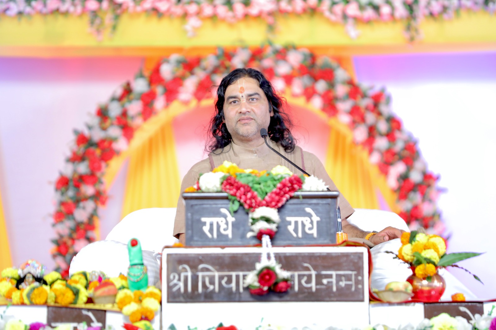 Shri Devkinandan Thakur Maharaj Ji is a melodious Sankirtanist, and a Humble humanitarian. He is awakened Nimbaraki, and, devotee of Shri Radha Sarveshwar, Optimistic and spell binder Orator of Bhagwat Katha, and is popularly known as Thakurji by the loved one’s.